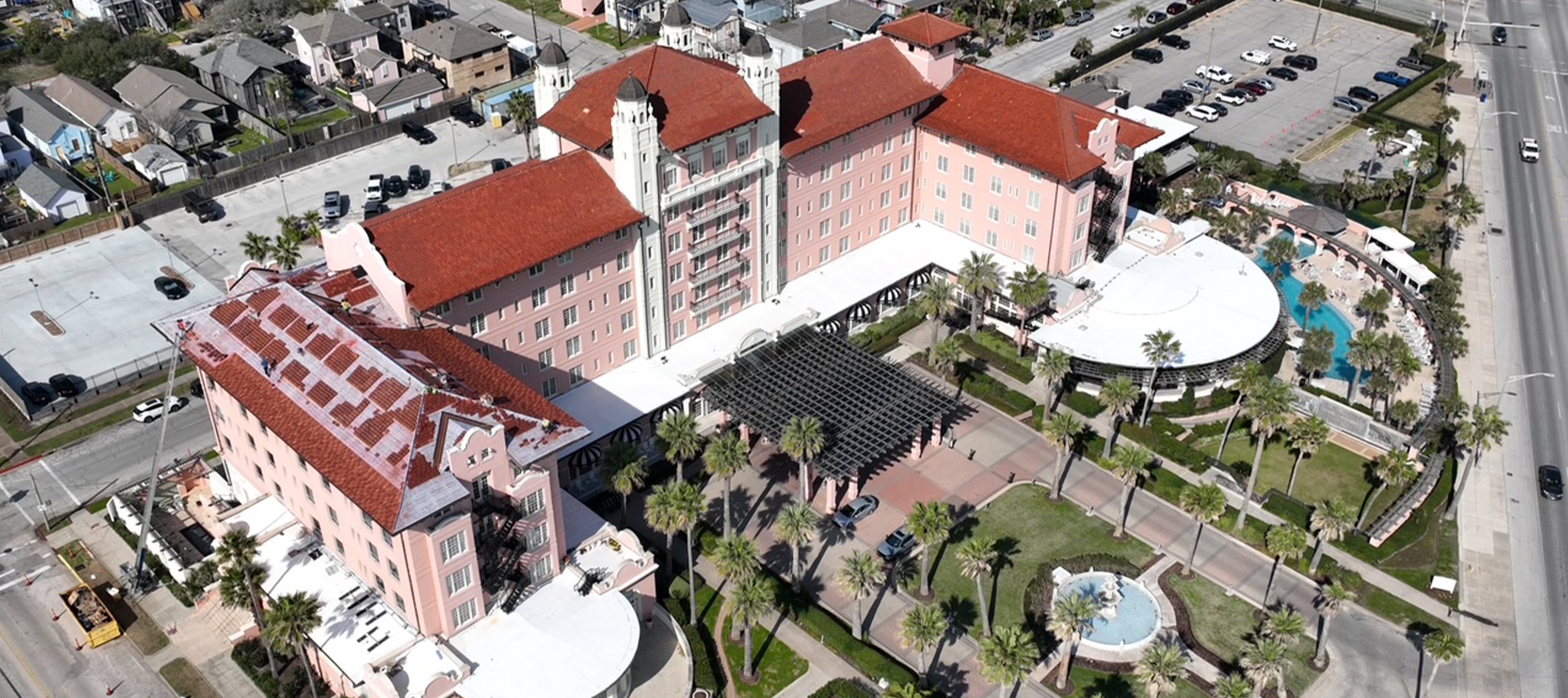 A historic hotel in Galveston, Texas, recently underwent a significant roof restoration. Dallas County Roofing led the project, installing 200 squares of Ludowici clay tile using APOC® Polyset AH-160, a two-component roof tile adhesive. The APOC Polyset Texas Team provided comprehensive training and certification for the installers, ensuring adherence to best practices.