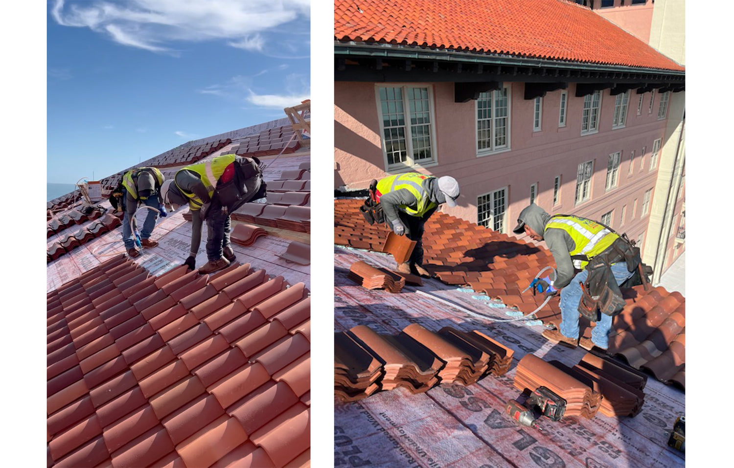 This restoration approach minimized roof deck penetrations, enhancing the roof’s durability and resilience against various weather conditions. The use of AH-160 Roof Tile Adhesive not only preserves the architectural integrity of the historic landmark, but also contributes to a more sustainable and long-lasting roofing solution.